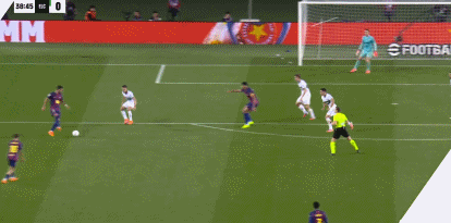 第45分钟,德容送妙传,费兰接球打门被扑